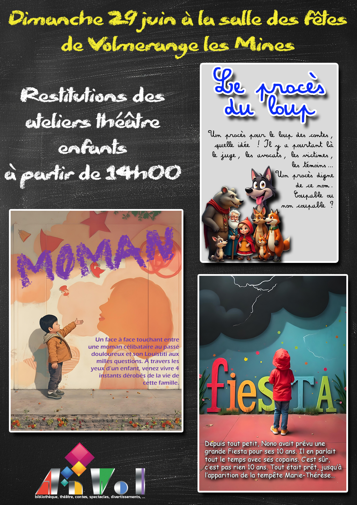 Cette fin de saison est l’occasion, pour les enfants des ateliers théâtre, de vous présenter le résultat de leur travail.